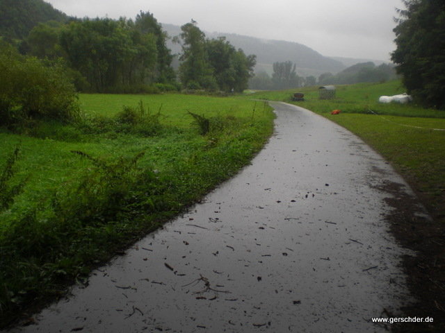 Auf dem Kocher-Jagst-Radweg von Aalen nach Künzelsau. Eine vielversprechende Tour, die unter normalen Umständen vier Tage dauern würde und ca. 330 Kilometer lang wäre. Leider hatten wir keine "normalen" Umstände, nach der ersten Etappe haben wir wegen nicht enden wollendem Regen unser Vorhaben abgebrochen. Eine Fortsetzung unter halbwegs erträglichen Bedingungen ist fest geplant.